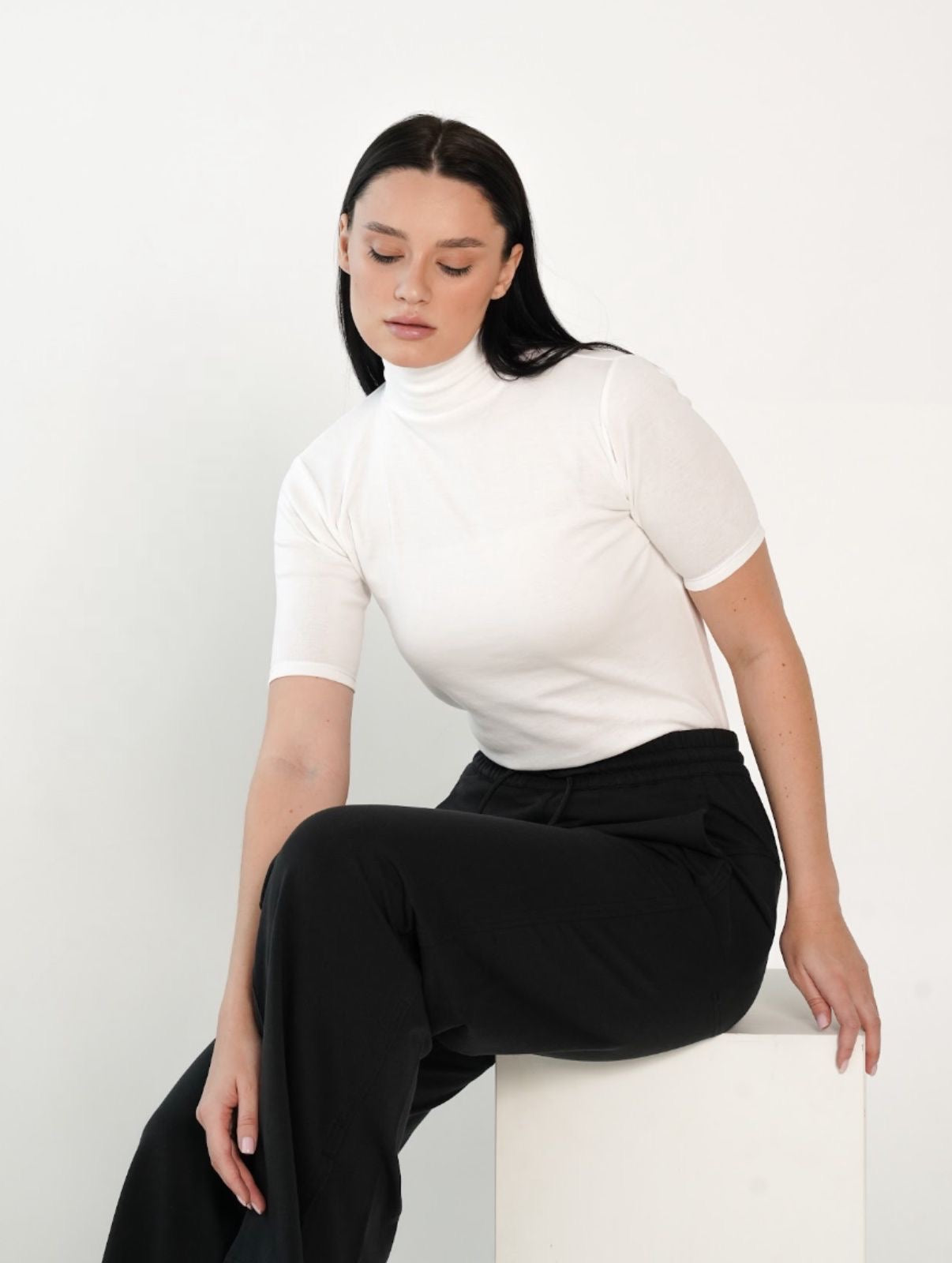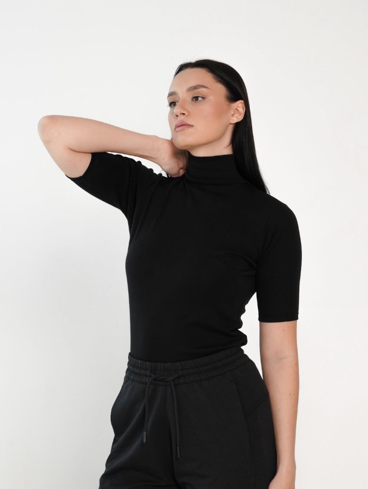 For a sleek and confident look, try our women’s short-sleeve high-neck top. Made from premium 100% Pima cotton, it delivers exceptional softness, comfort, and breathability. The high neckline adds a touch of elegance, while the short sleeves keep it light and versatile for any season. Designed with a flattering, feminine fit, this top complements your shape and provides lasting comfort all day long. Its smooth, durable fabric makes it perfect for layering or wearing on its own. Available in black and white and various sizes, it’s an effortless piece to pair with jeans, skirts, or tailored pants.